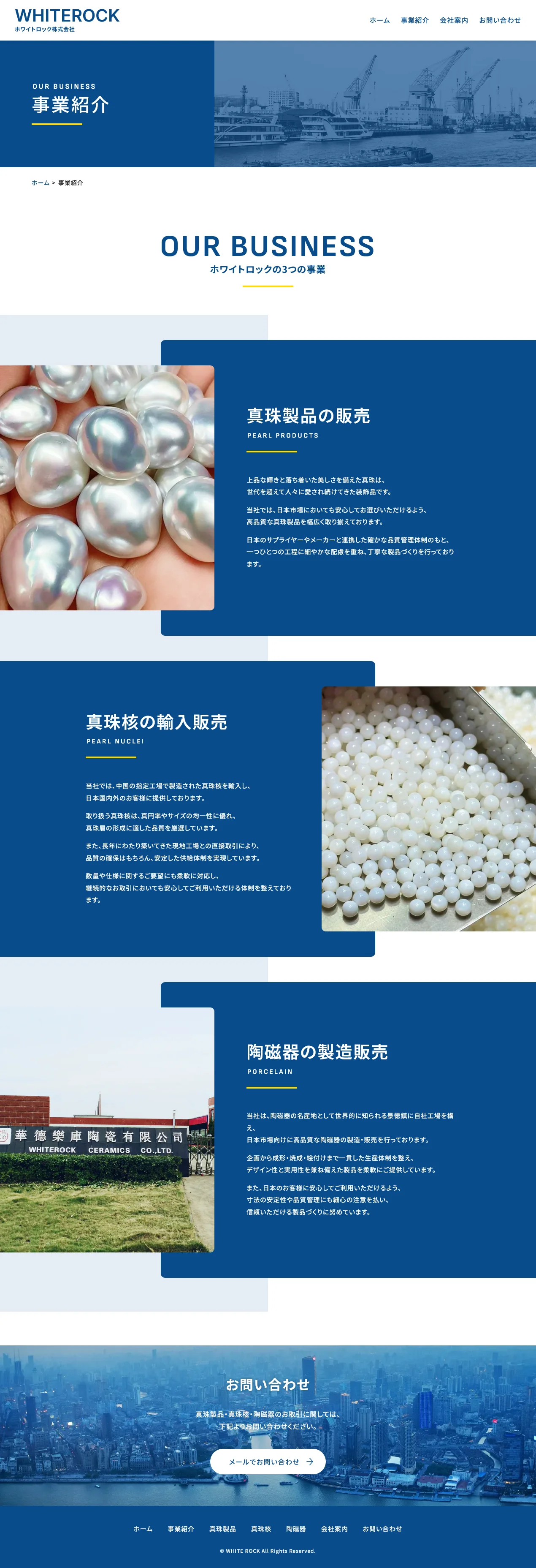 大阪に本社があり、中国の上海や景徳鎮で製造や輸出入事業を展開されているホワイトロック株式会社様のホームページを制作しました。